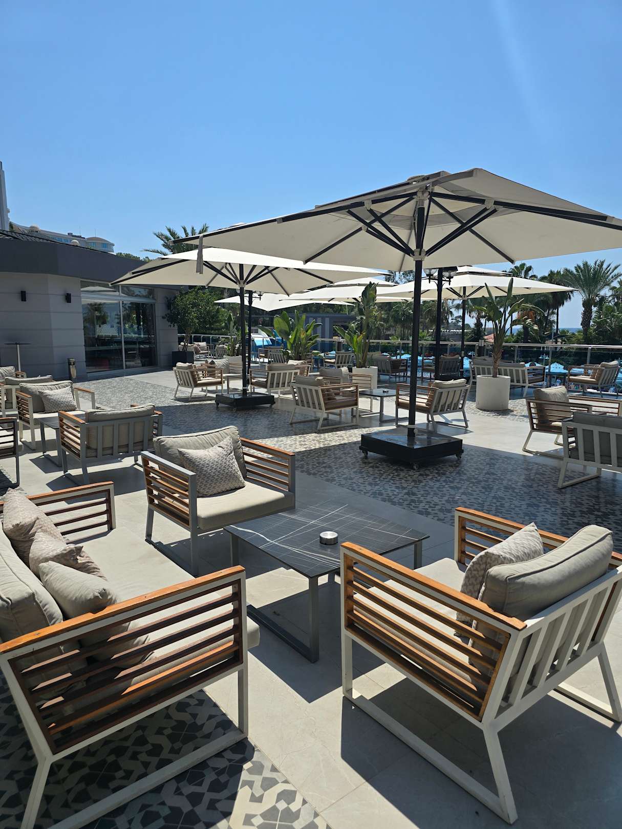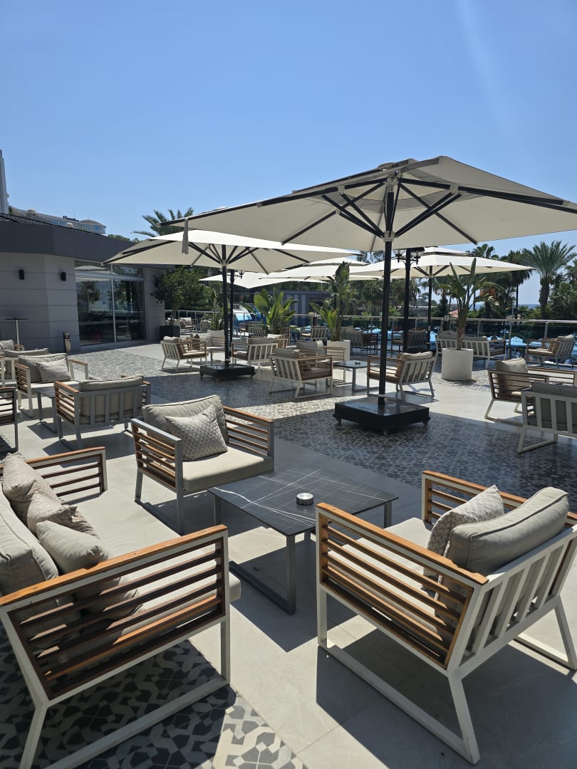 Das war die Terrasse, die von der lobby aus dran war. Abends ein mega Spot.