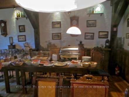 Blick auf einen Teil des am Morgen im Restaurant aufgebauten Frühstücksbüffets.