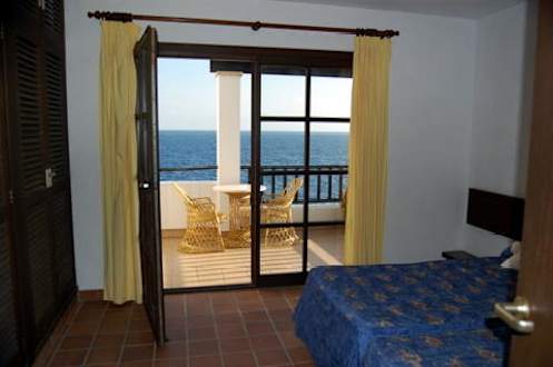 Schlafzimmer mit Balkon und Meerblick