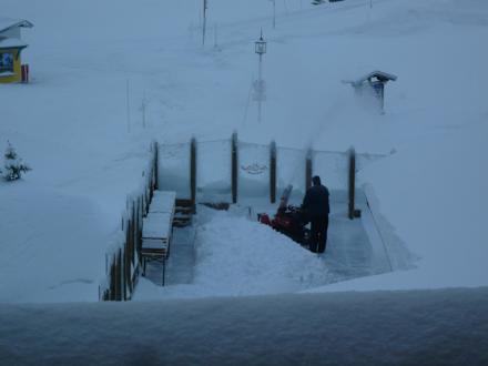 NeuschneeInnerhalb einer Nacht ist soviel Neuschnee gefallen. Hier die Terrasse vom Heustadl (Blick von unserem Balkonaus).