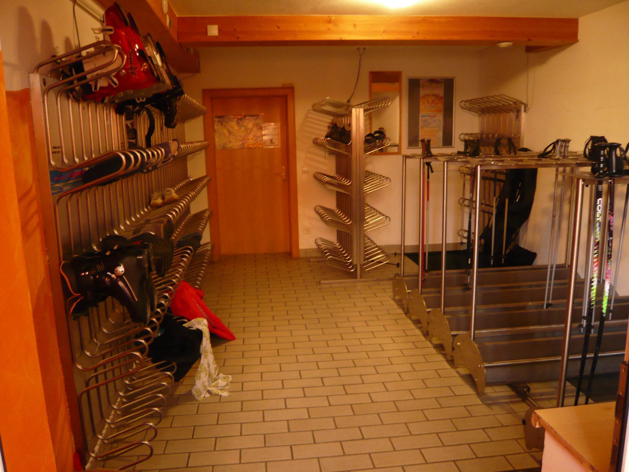 SkikellerHier ist genügend Platz für die Skischuhe und die Ski. Die Skischuhheizung wird abends angestellt. Morgens sind die Skischuhe schön warm.