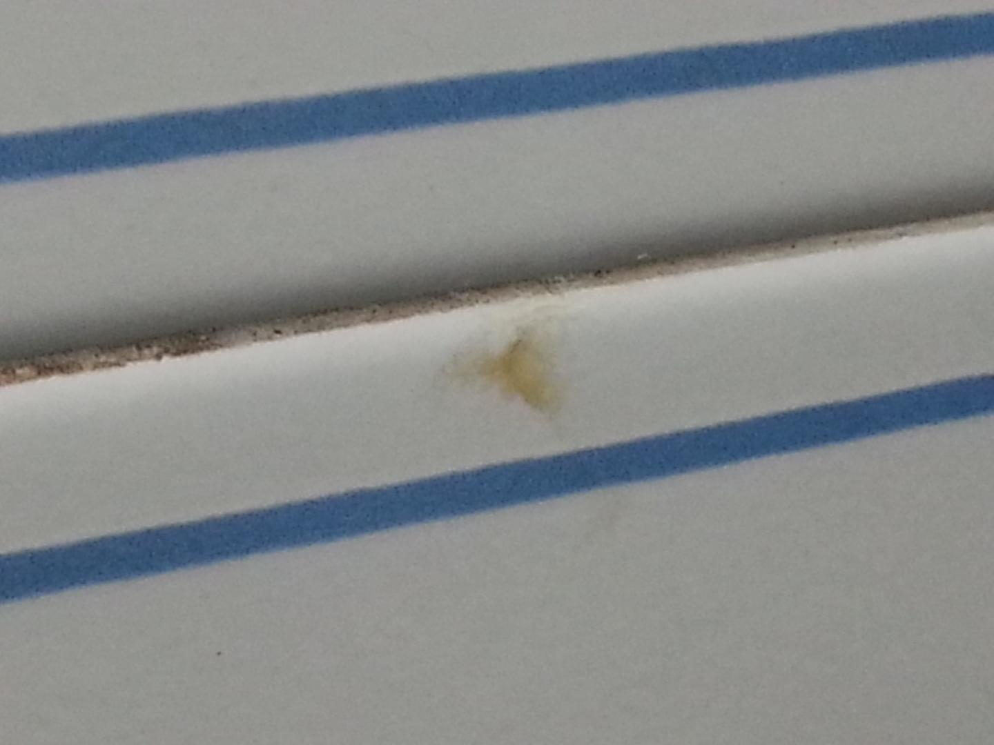 Popel (?) an Fliese im Bad, neben dem Spiegel