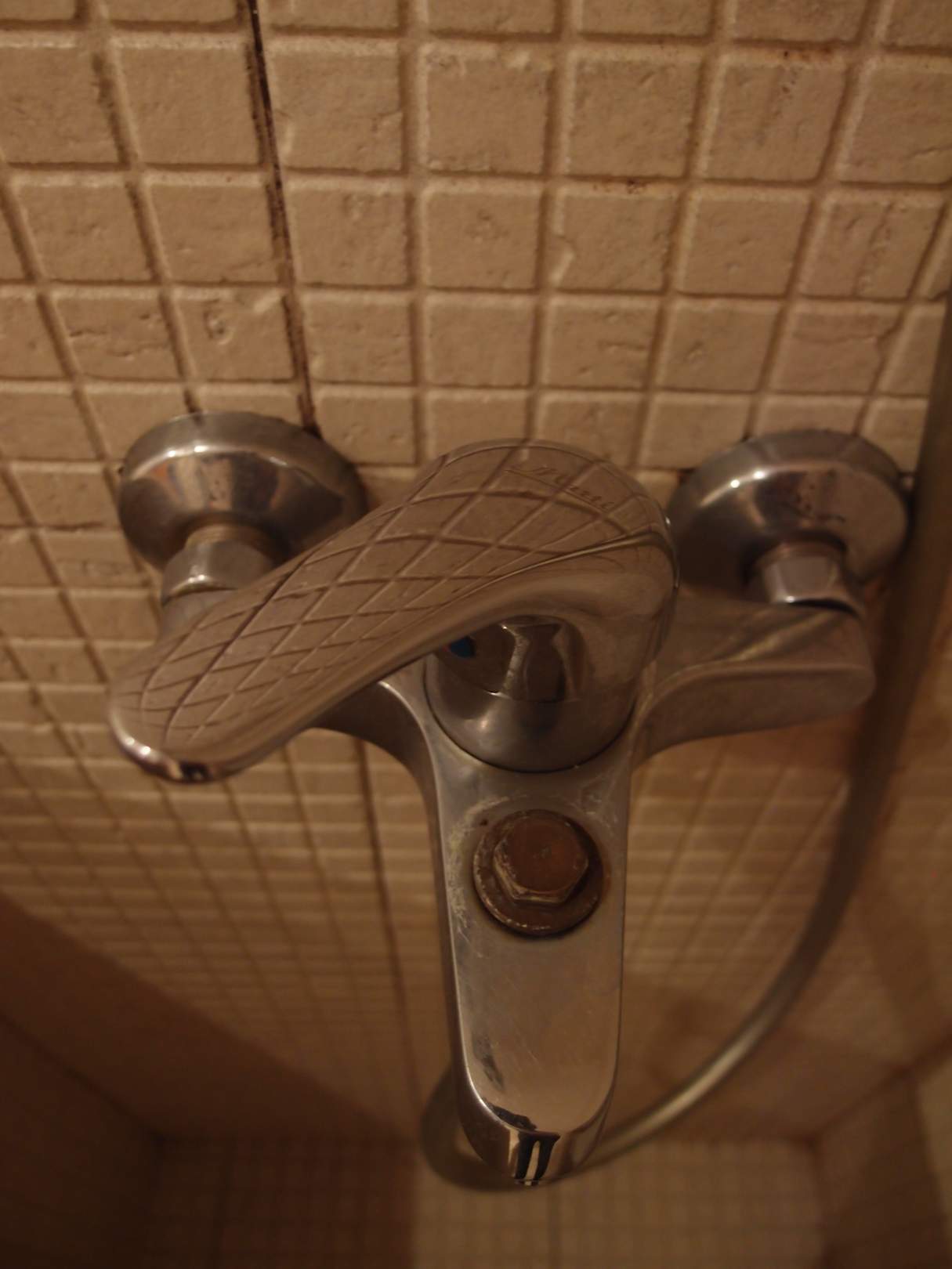 Das war die Amatur im ersten Zimmer Block A. Jedoch im Block C war sie auch nicht besser!! Sie hang runter. Beim duschen musste ich sie zwischen die Knie klemmen!!