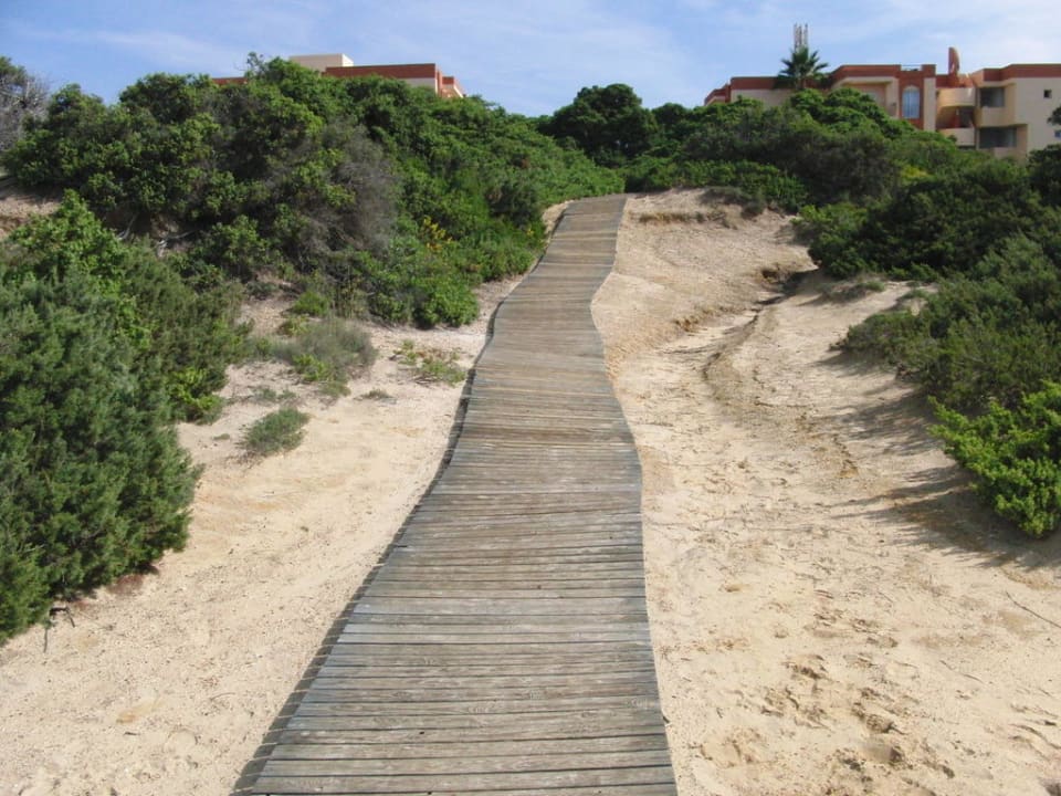Hoteleigener Weg zum Strand über ca. 30m Holzsteg.