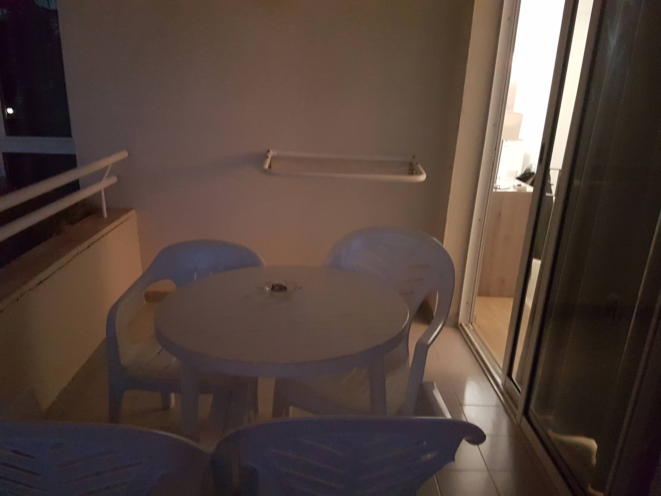 Balkon mit Tisch und 4 Stühlen
