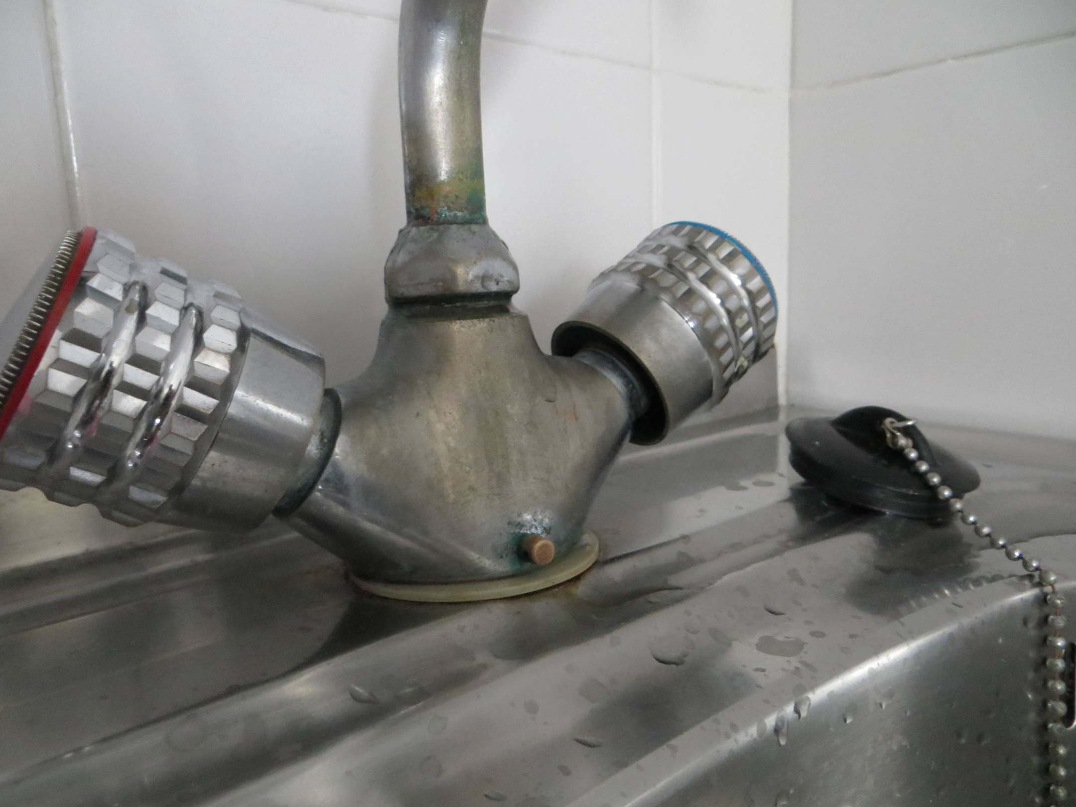 Wasserhahn total verdreckt in der Mini Küche