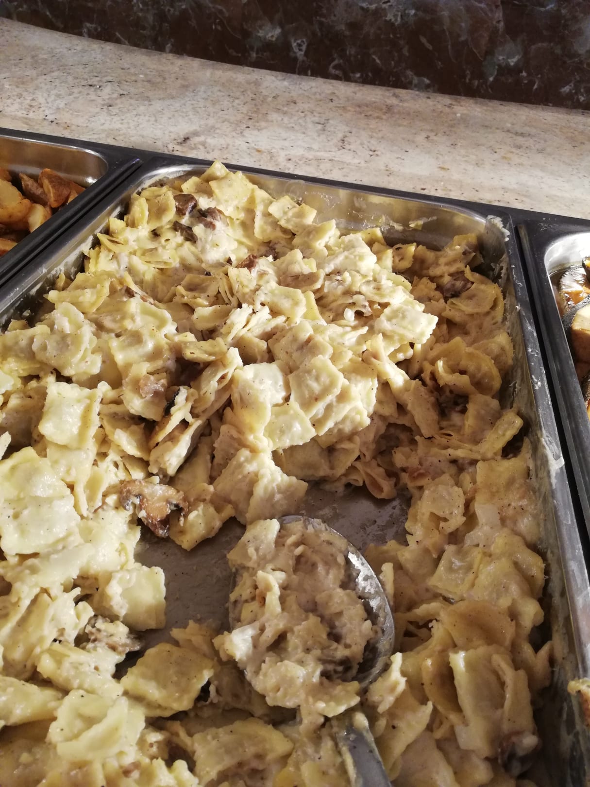 Das sollte Ravioli sein mit undefinierbarer Füllung, es schmeckt wie Gatsch,grauslich