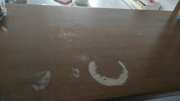 GastroArbeitsfläche ( war mit Tischläufer abgedeckt). Dieser Schrankbereich mit Durchreichen, ist älteres Baujahr.