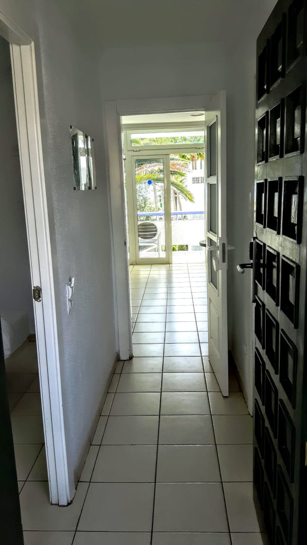 Eingang zum Apartement mit Blick auf Balkon - links Schlafzimmer, rechts Bad
