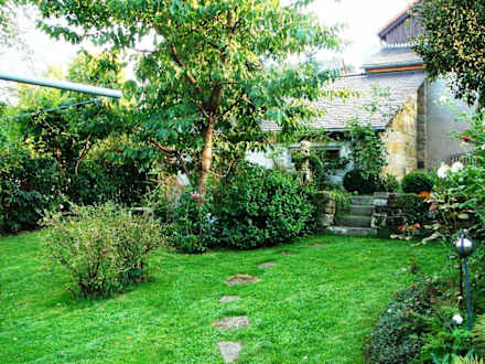GartenDer Weg durch den Garten zum Sauna-Haus.