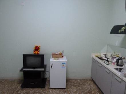 Fernseher im Aufenthaltszimmer mit Küche