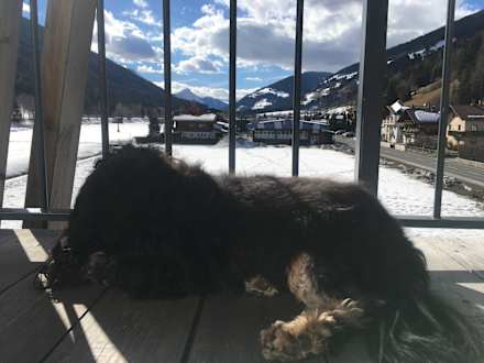 Unser Hund genießt die Aussicht und die Sonne
