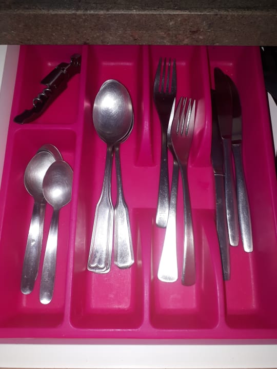 Sehr kleiner Besteckkasteninhalt, mit nicht mehr scharfen Messern ...