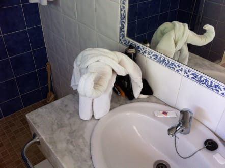 Das Reinigungspersonal baute diesen Elefanten aus Handtüchern für uns. War eine Nette Überraschung nach dem ersten Tag am Strand
