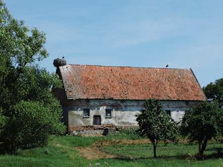 Idyllic views - old house with a stork.