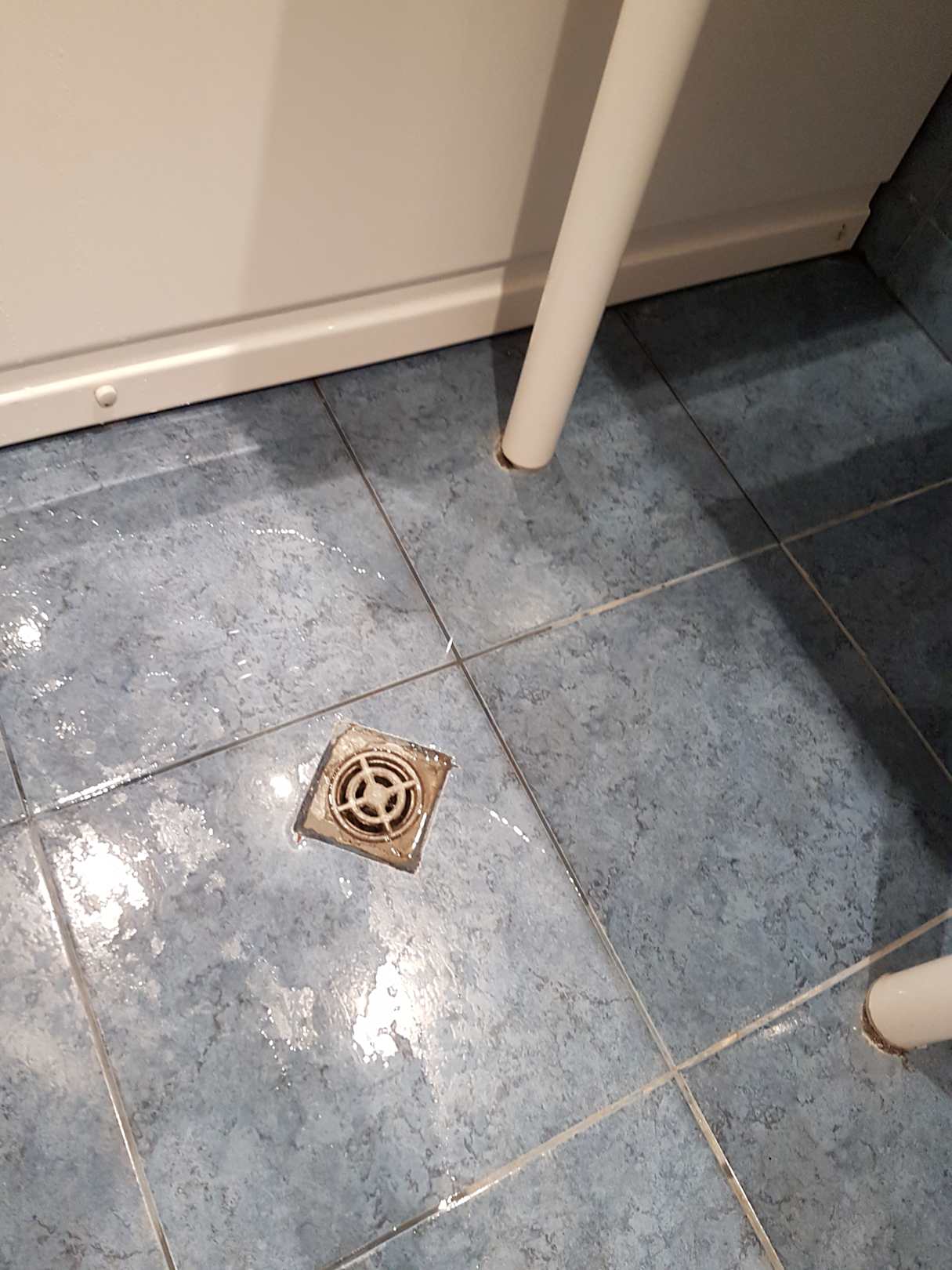 ZimmerDusche undicht, somit läuft das Wasser in den vorhandenen Abfluss.