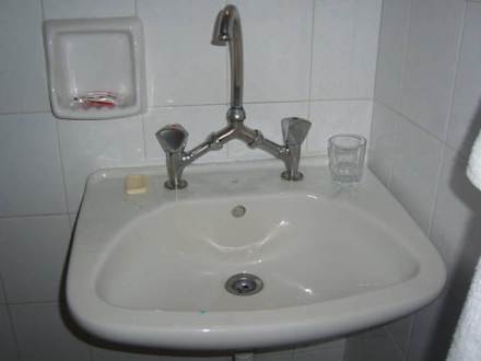 Waschbecken und Wasserhahn