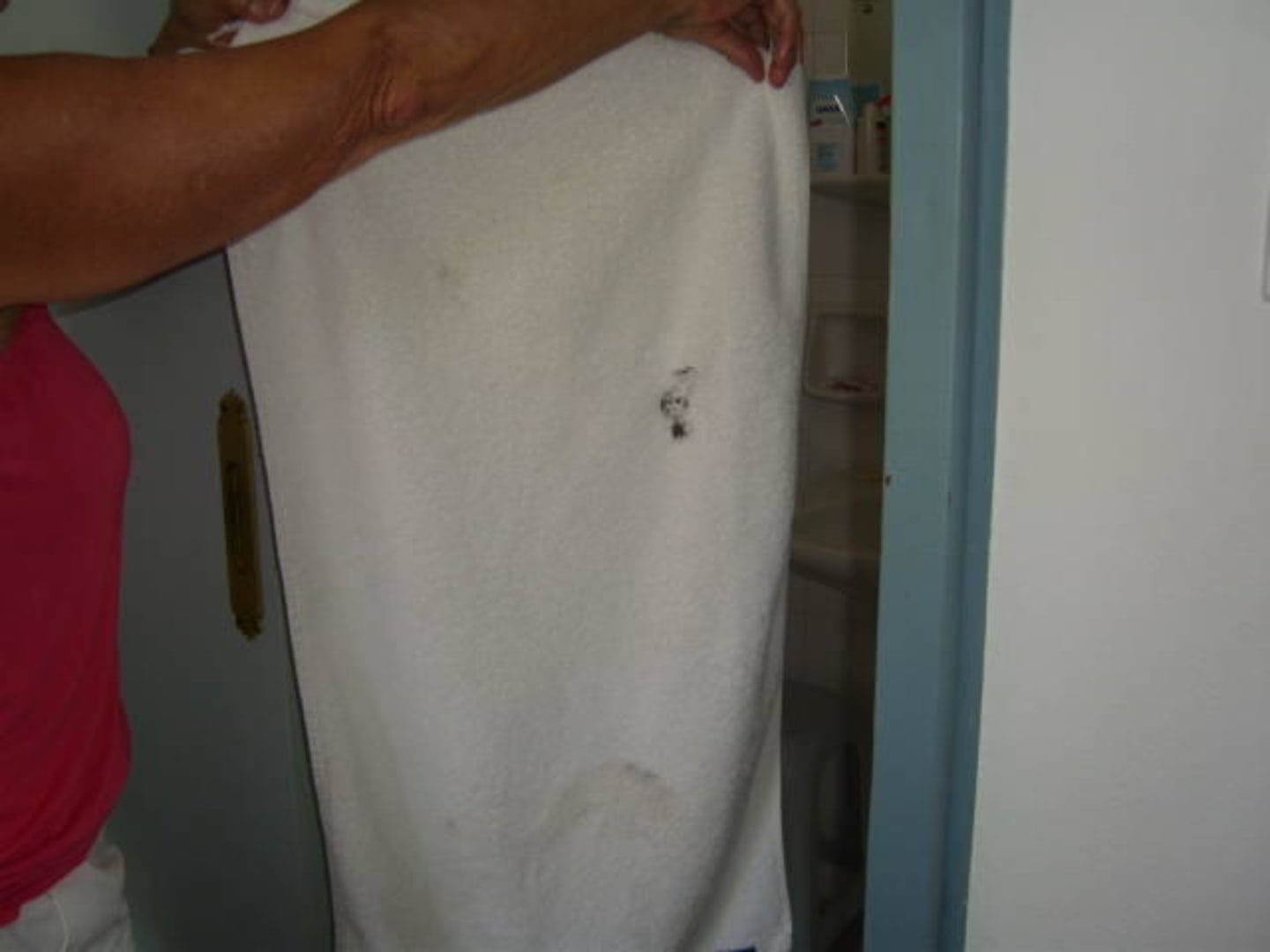 So sahen die Handtücher stets aus, immer mit Löchern zum Aufhängen versehen.