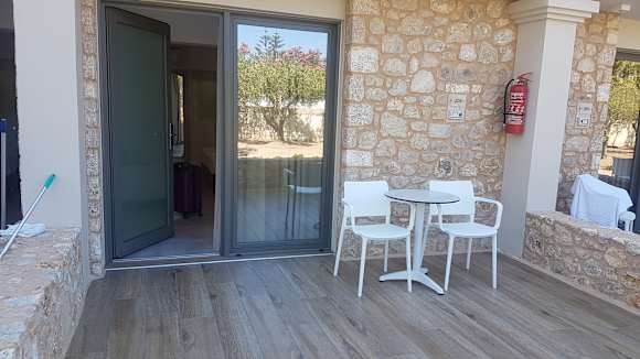 ZimmerSchöne Terasse mit ausreichend Platz. Man könnte vielleicht noch irgendeine Form von Sichtschutz zum nächsten Nachbarn