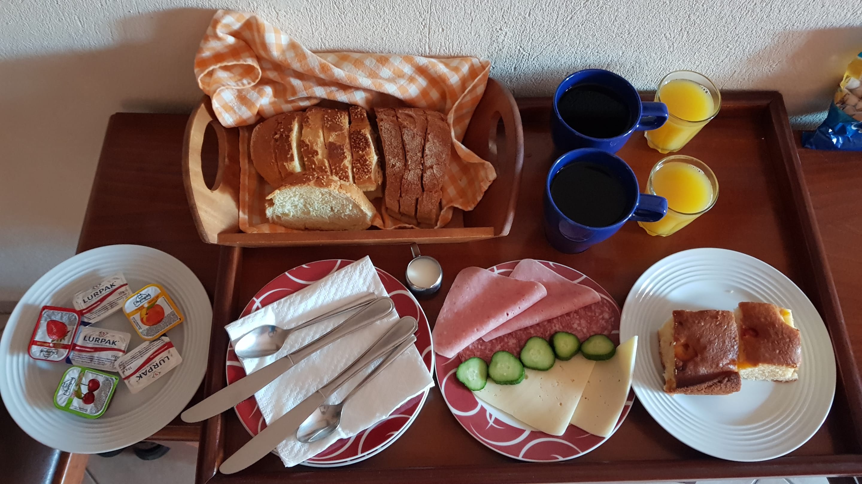 Frühstück vom Supermarkt und abgepackte Marmelade.