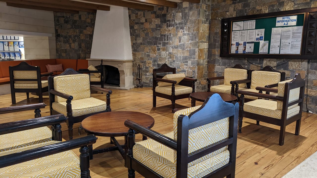 Sitzbereich mit der großen Informationstafel für alle interessierten Gäste. Auf dieser Tafel findet man die wichtigsten und neuesten Informationen über das Hotel.