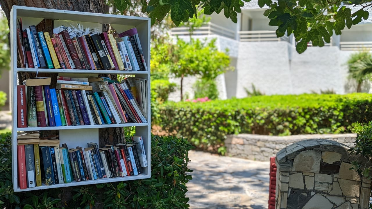 Man kann kostenlos Bücher lesen, im gesamten Hotel-Gelände....