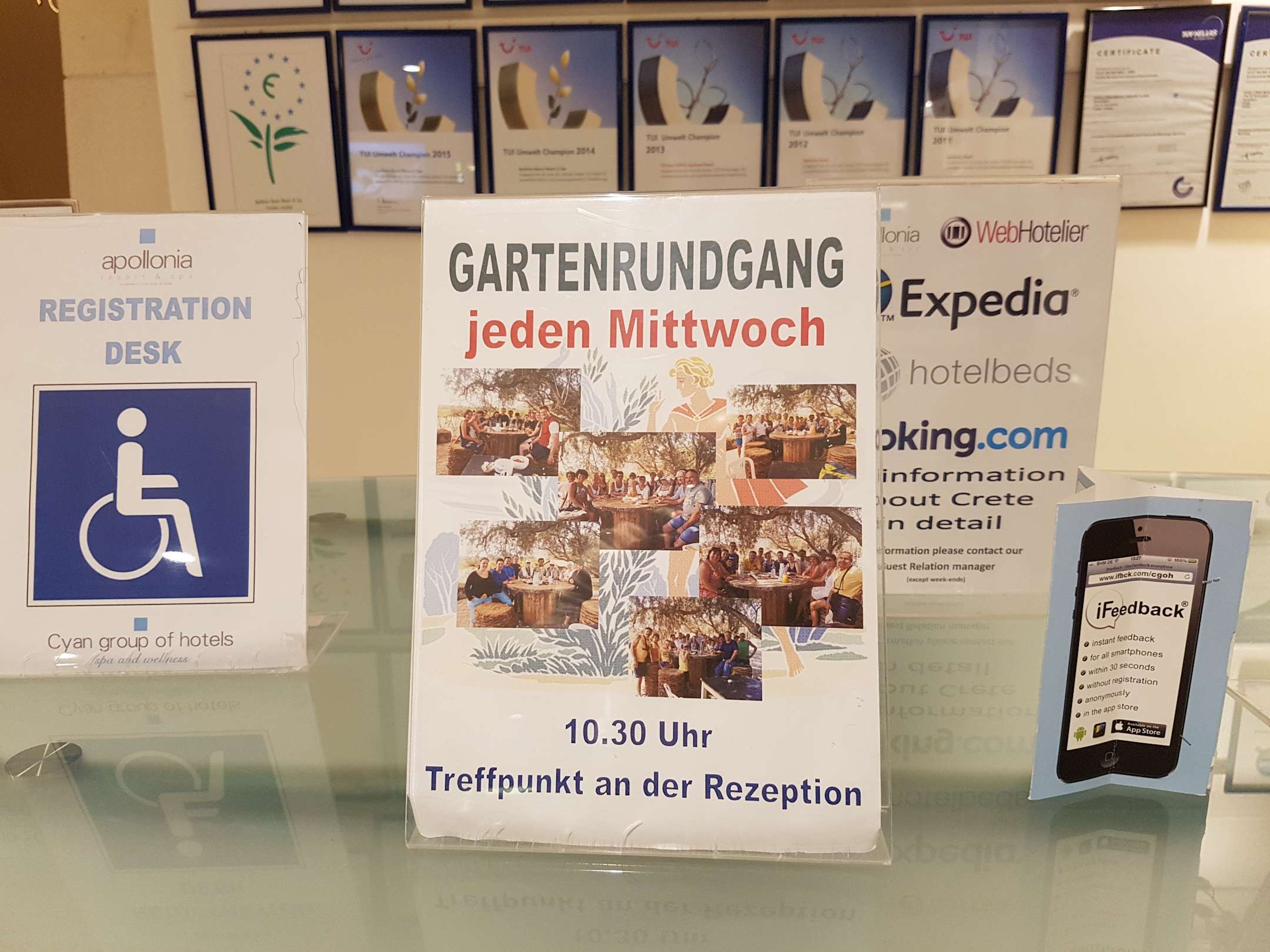 In der Nähe der Rezeption (gegenüber) befindet sich das Informations- & Service-Center des Hotels. Hier kann man sich informieren und auch sich auch für iFeedback einloggen.