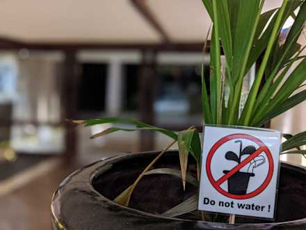 SonstigesManche Leute haben ihre Getränke einfach in die Blumenkübel gegossen. Das Hotel musste mit "Warnschildern" reagieren.