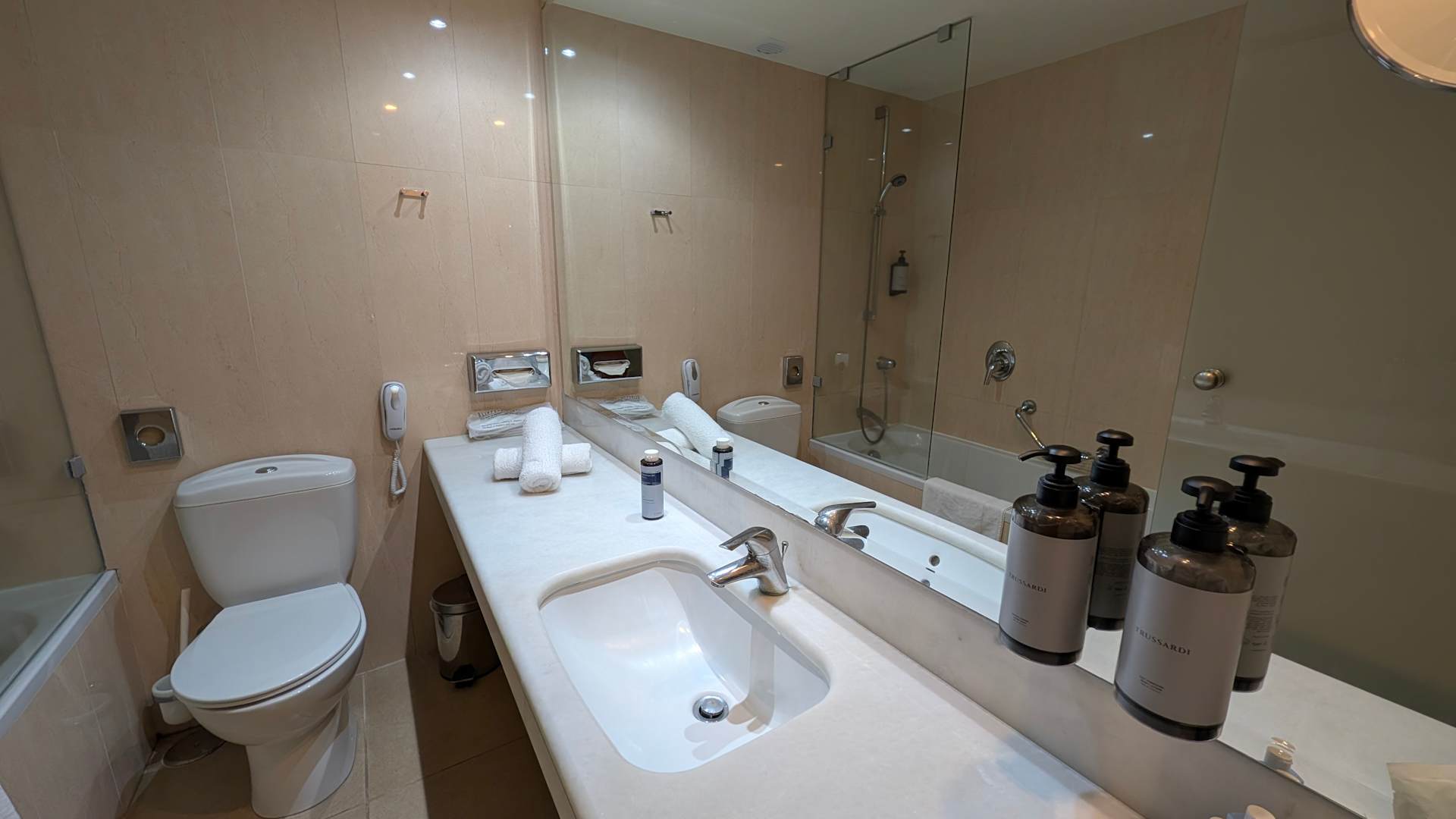ZimmerAlles was man in einem modernen und praktischen Bad gebrauchen kann, ist im Zimmer 425 vorhanden (je nach Buchungs-Kategorie).