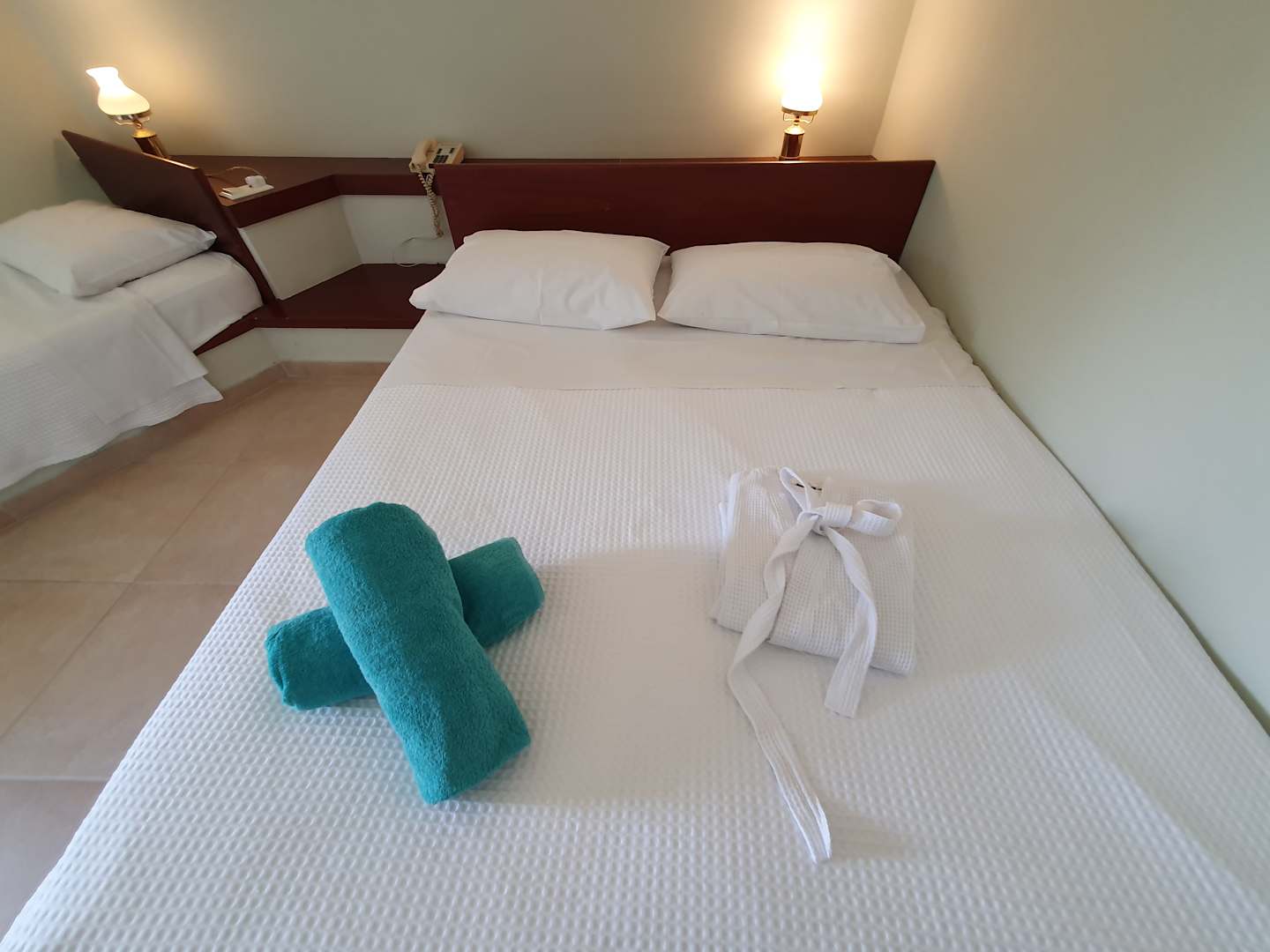 Das große Doppelbett im Bungalow-Zimmer 648