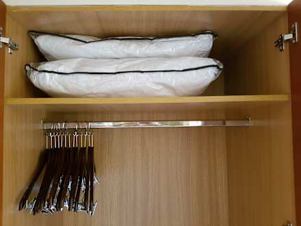 Zusätzliche Kopfkissen und ausreichend Bügel sind vorhanden.