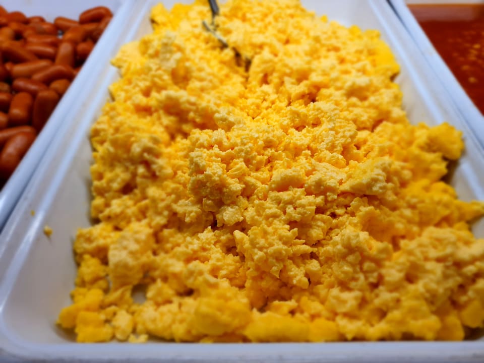 Das frische Rührei wird ständig nachgefüllt. Kann man sich dann mit Speck, Würstchen, Ketchup, etc... verfeinern lassen. Das Personal erfüllt jeden Wunsch.