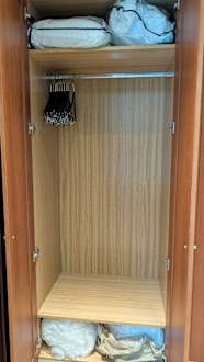 ZimmerKleiderschrank ist für zwei Personen vollkommen ausreichend. Für kühlere Nächte sind auch Wärmedecken vorhanden.