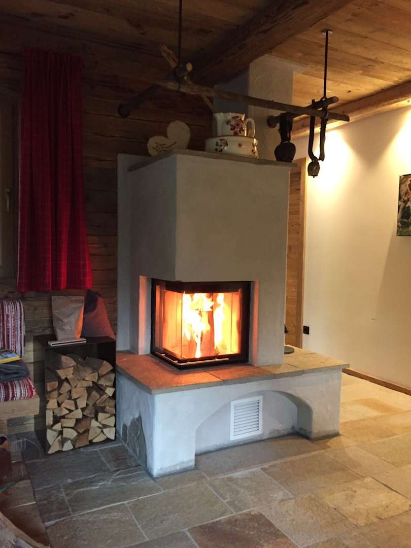 Der Kamin im Wohn- und Küchenbereich macht es gemütlich warm an kalten Tagen.