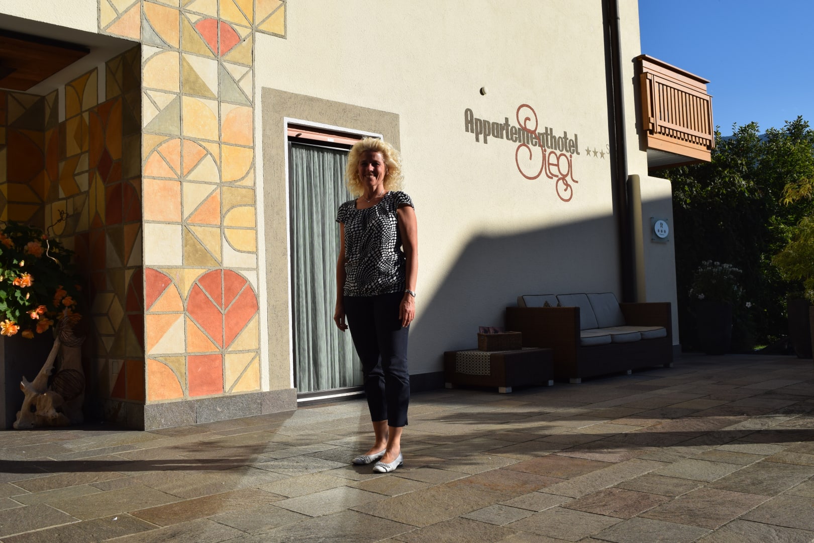 Die wunderbare Gastgeberin, Frau Ladurner, vor ihrem Haus Siegi