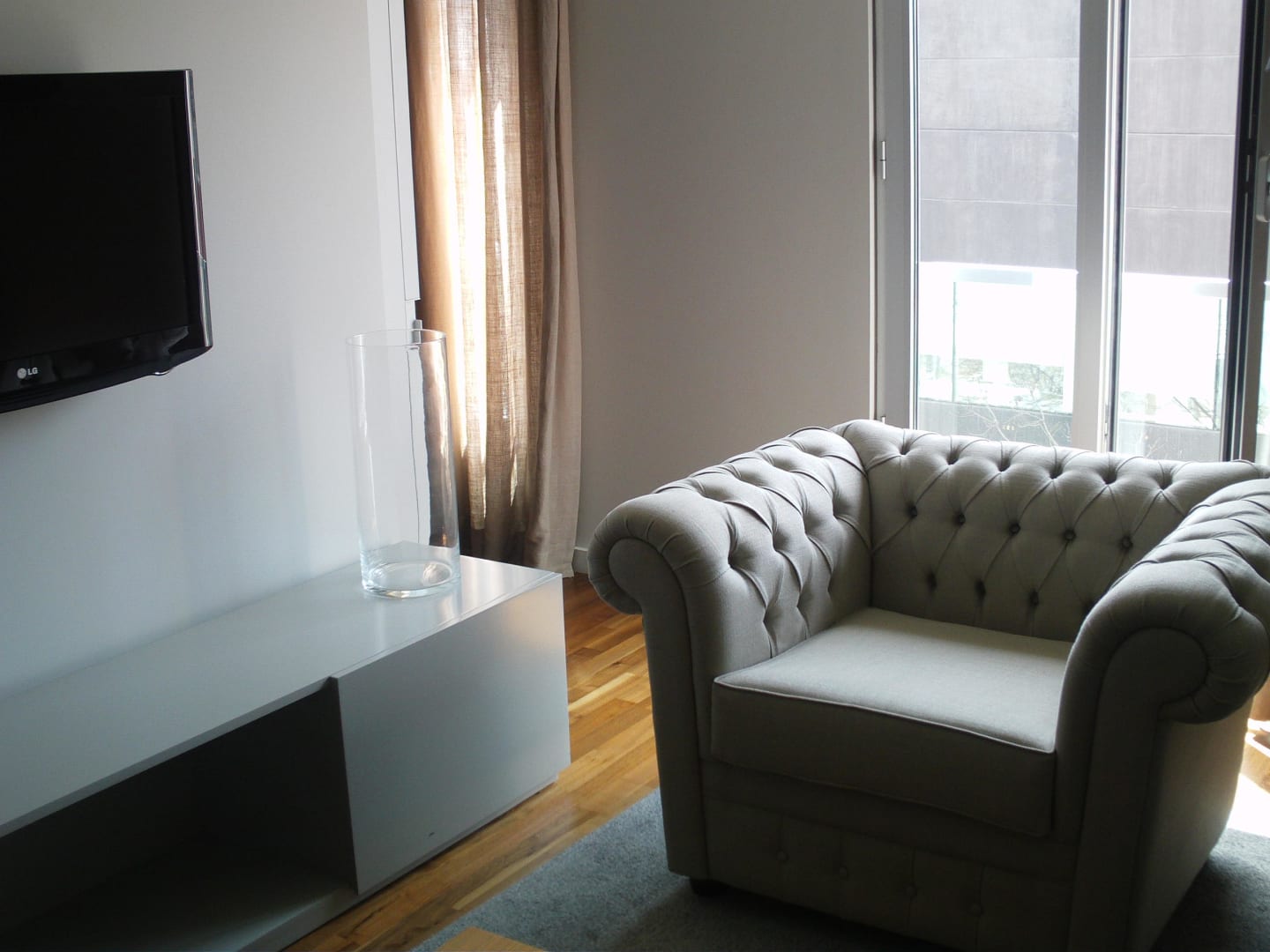 Bequemer Sessel im Wohnbereich mit großem TV