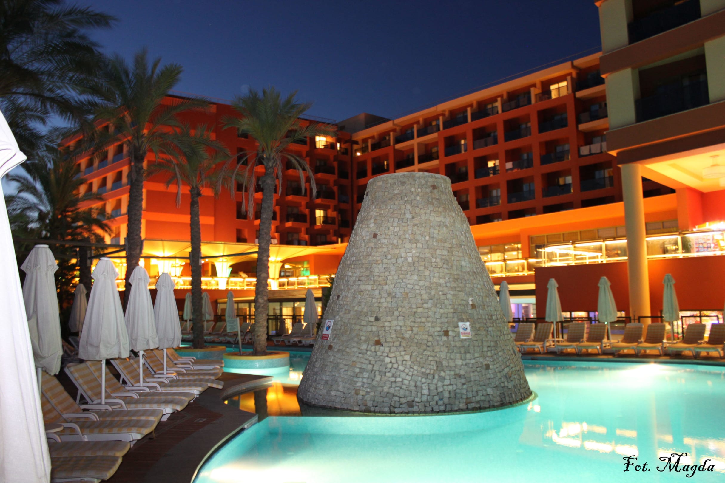 Widok z basenu na restaurację