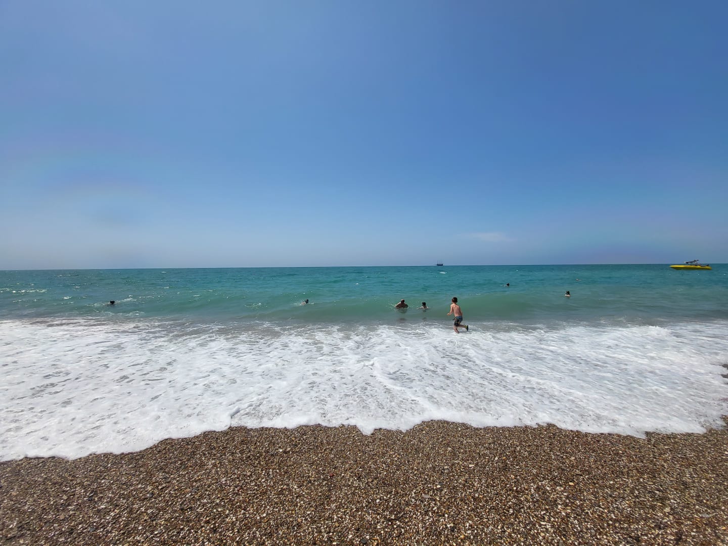 Kieselstrand, wird sehr schnell tief.