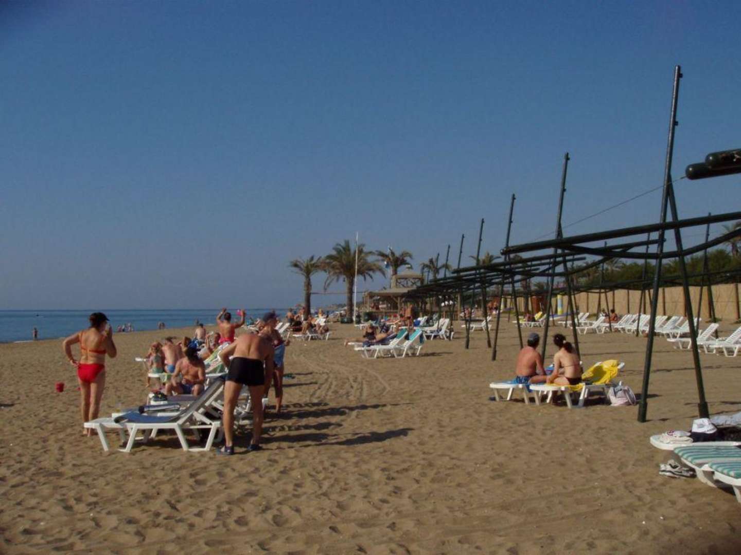 wenn auch schon teilweise winterfest gemacht (Sonnensegel fehlen, werden aber auch nicht mehr benötigt - Zäune zum Schutz der Anlage werden aufgestellt), so lädt der breite Strand mit den Liegen dennoch zum Sonne-Tanken ein.