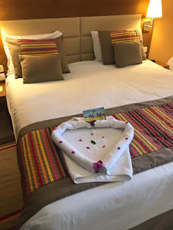 ZimmerUnser Zimmer mit Boxspringbett. Sehr schön hergerichtet. Leider wurde uns der Anblick der schönen Figuren nur 2 mal in einer Woche zuteil.