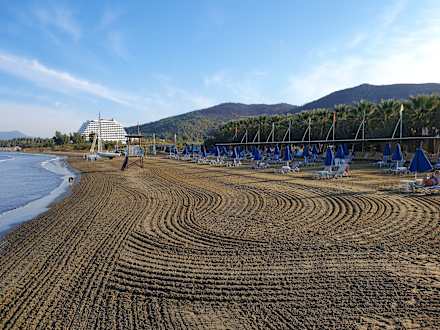 So sieht der frisch geharkte Strand morgens aus.
