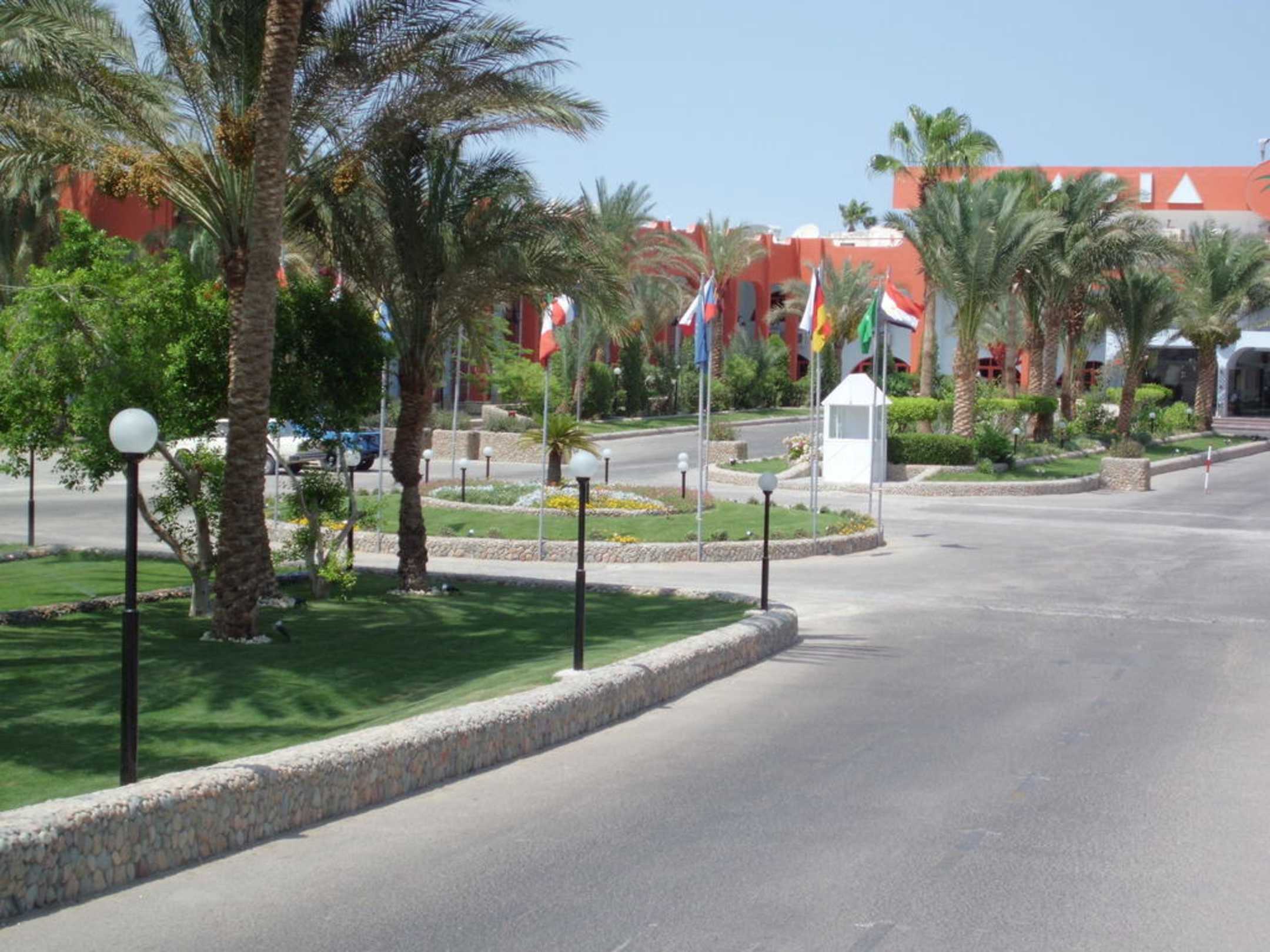 Das Hotel von der Einfahrt aus fotografiert