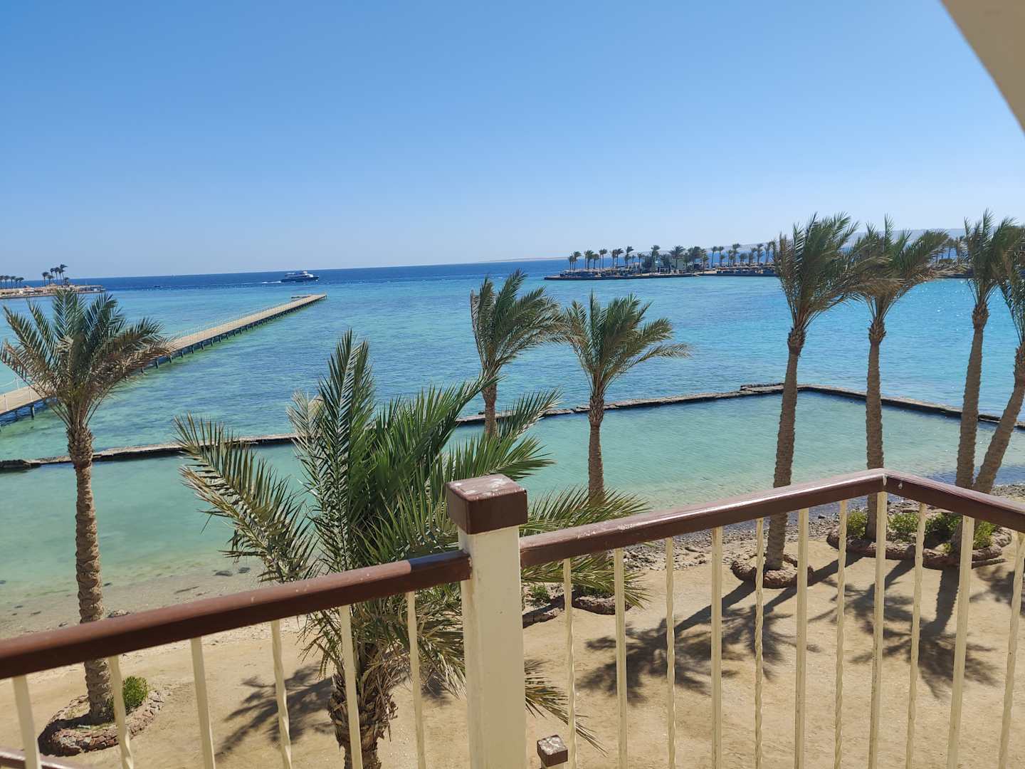 Das Boot am Hintergrund fährt am Riff vorbei