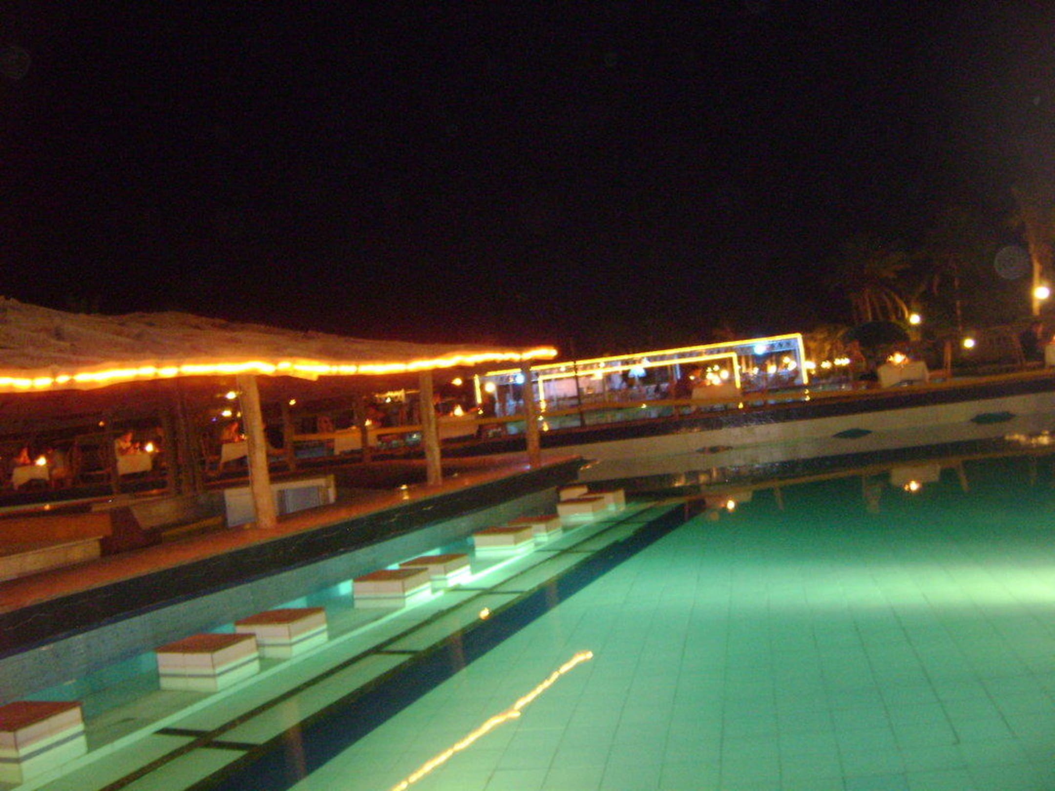 Pool und Poolbar bei Nacht