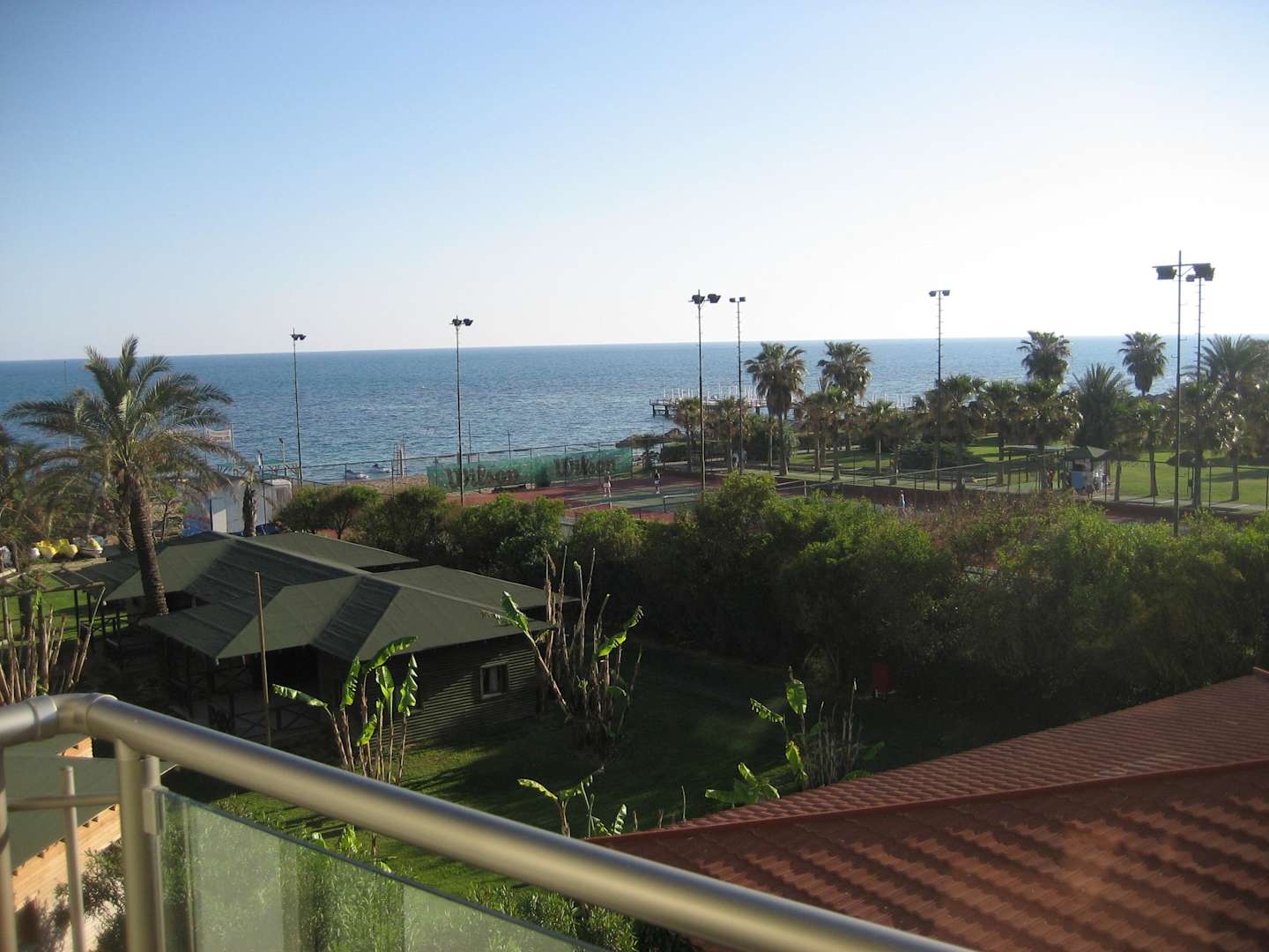 Blick vom Zimmerbalkon auf den Garten und Strand Arcanus Hotels Sorgun