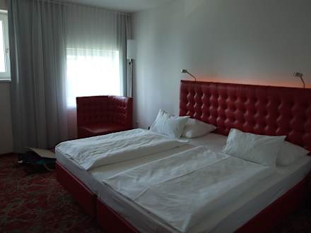 Doppelzimmer in rotem Lederdesign