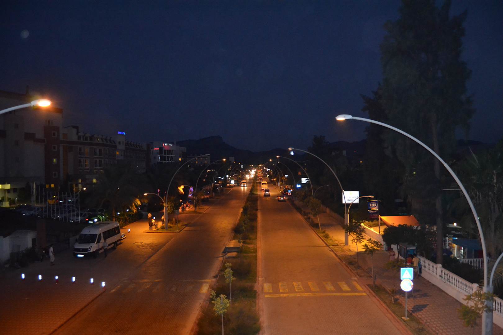 Вид с моста на главную улицу и отель