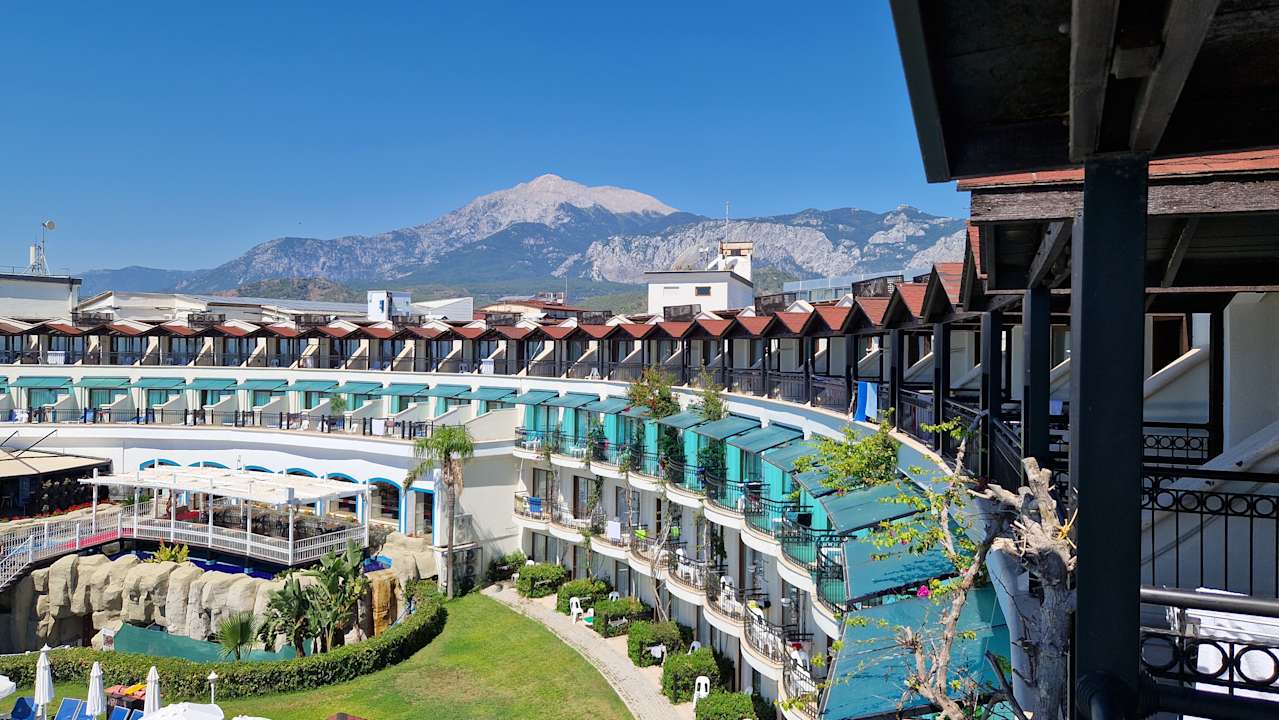 Blick auf die Berge hinter dem Hotel