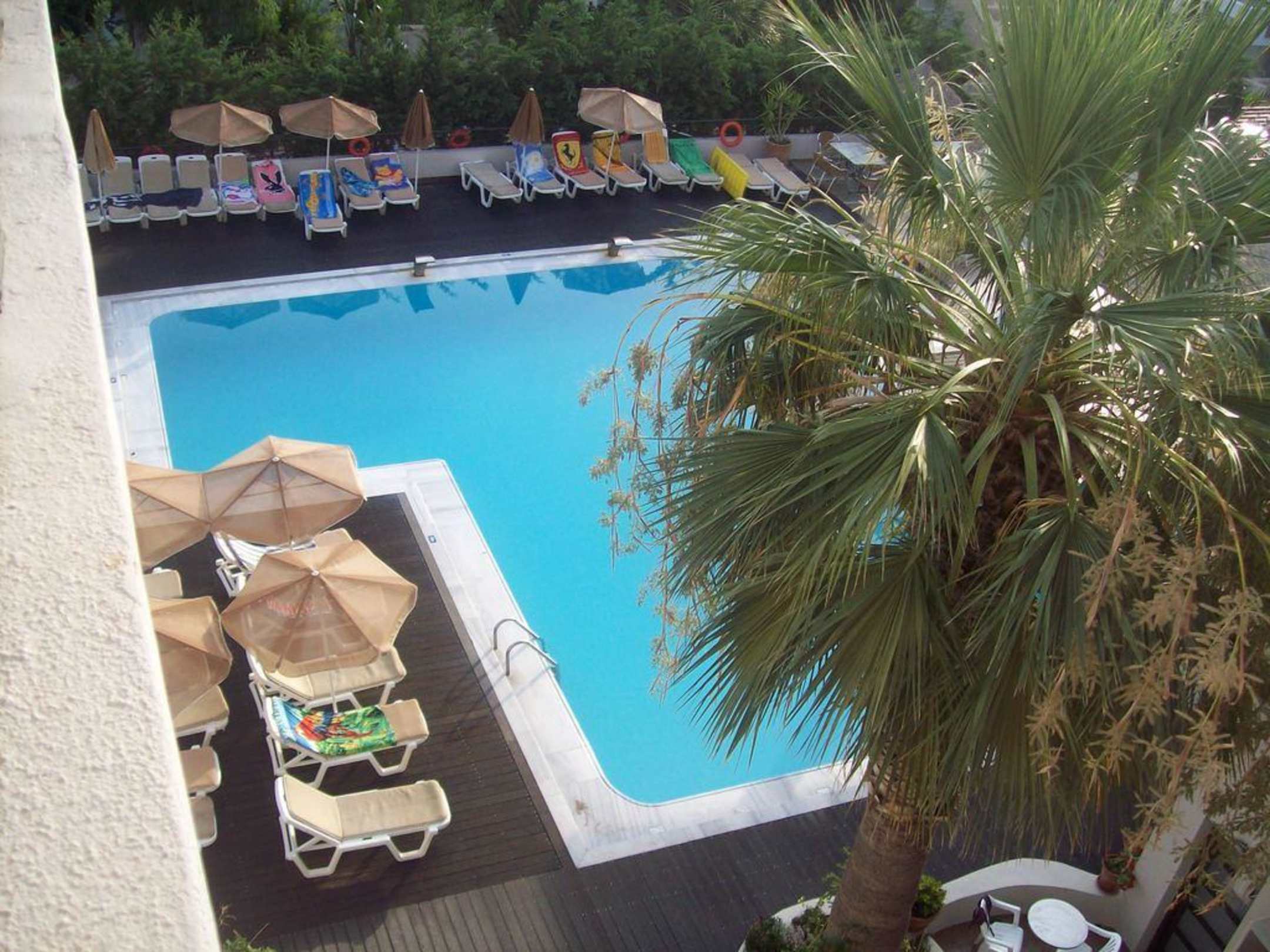 Blick vom Zimmer auf den oberen Pool