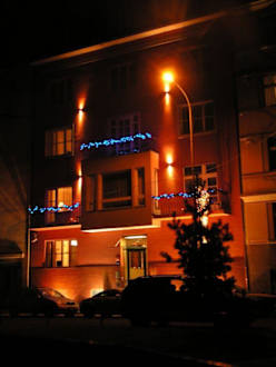 Eingangsfront weihnachtlich beleuchtet